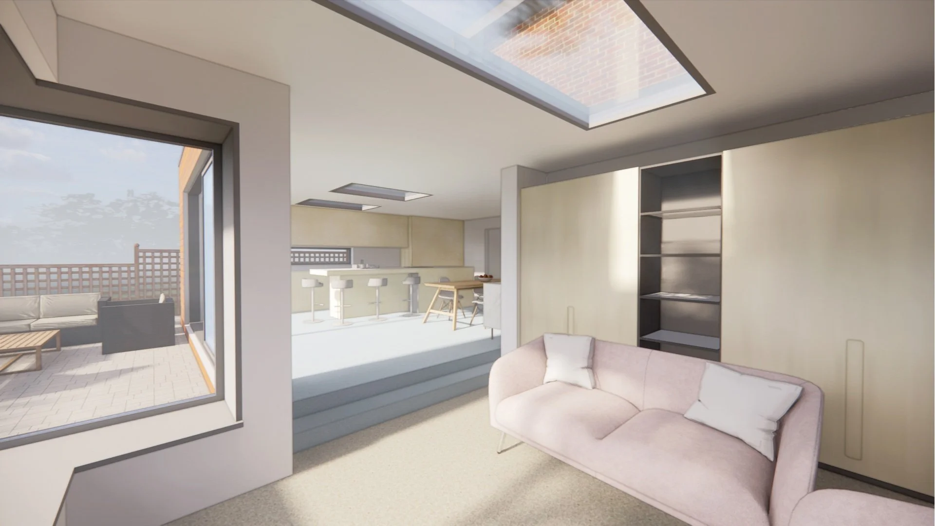 Previous extensions resulted in spaces that did not flow well and created a stack of smaller separate rooms and barriers when accessing the beautiful garden at the rear of the property. The house is being fully remodelled internally and externally to enlarge and open up the living areas and connect them with the outdoor space. Much needed en-suite is being added to the master bedroom on the first floor as well as large utility and boot room on the ground floor.