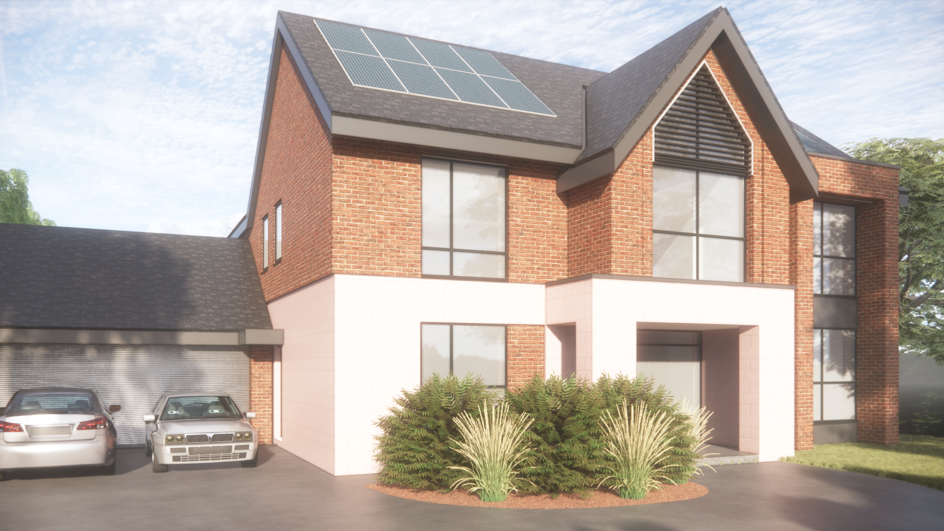 This project involves the replacement of an existing 1960s bungalow within a designated conservation area, creating a new contemporary family home that balances sustainability with contextual sensitivity. The new two-storey, five-bedroom detached house with an attached double garage is designed to provide flexible, lifetime use for its occupants.